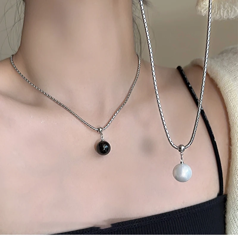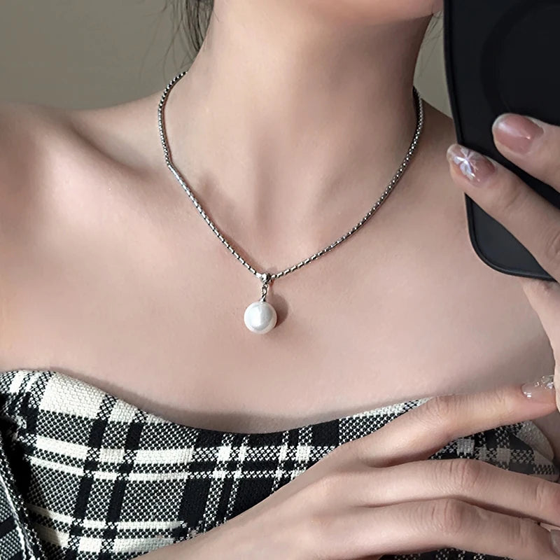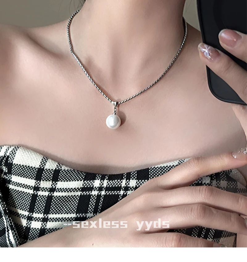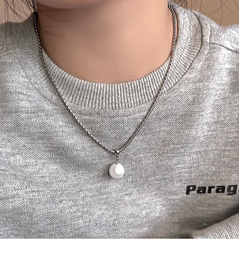 2024 Autumn/Winter Stainless Steel Chain Pearl Pendant Necklace Goth Girls' Fashion Accessories Non Fading Jewelry For Womens