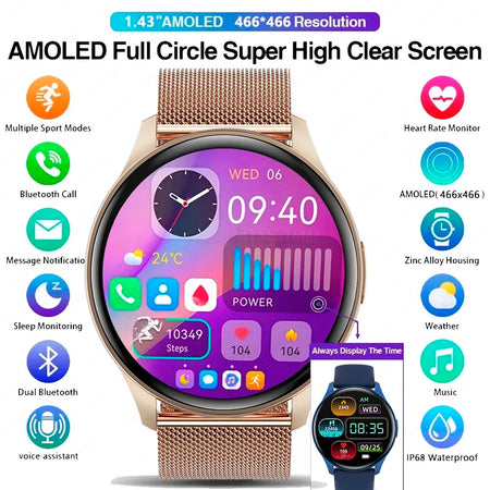 2025 New For Xiaomi Huawei 1.43 inches Bluetooth Call Smartwatch Women Men AMOLED 466*466 HD Pixel Display Smartwatches Ladies