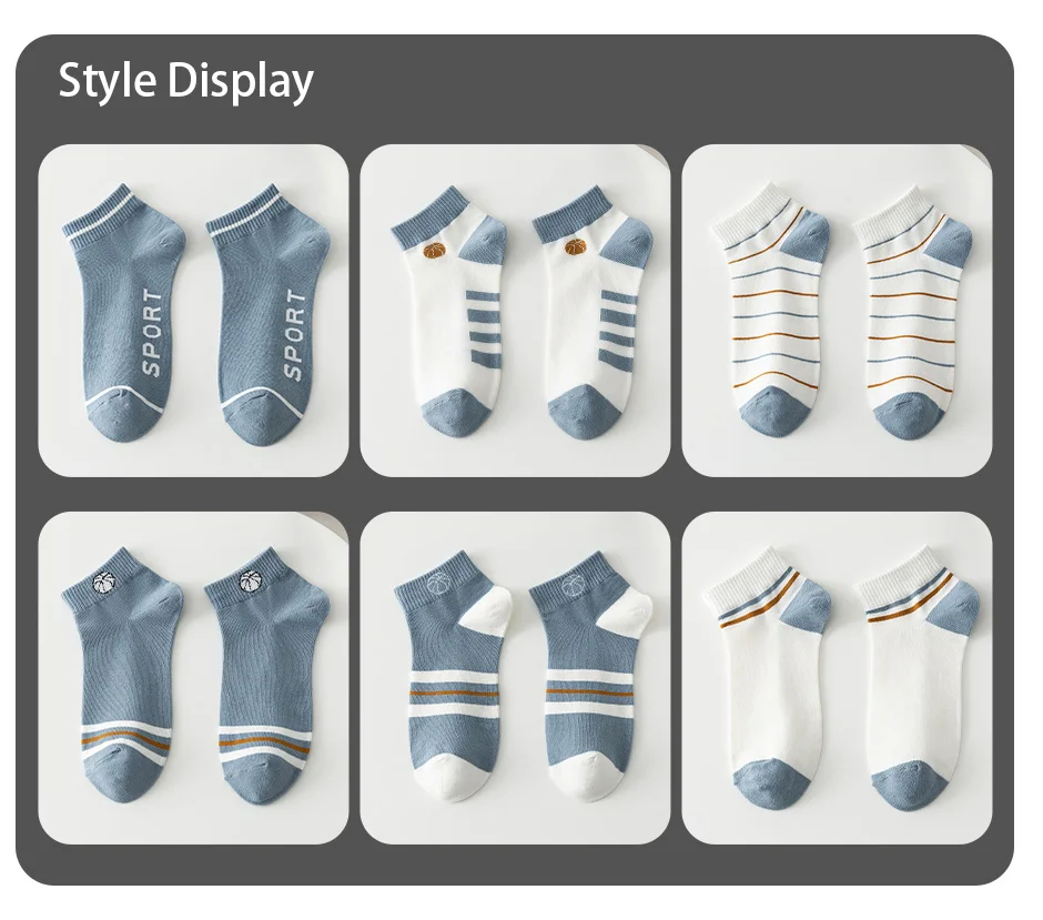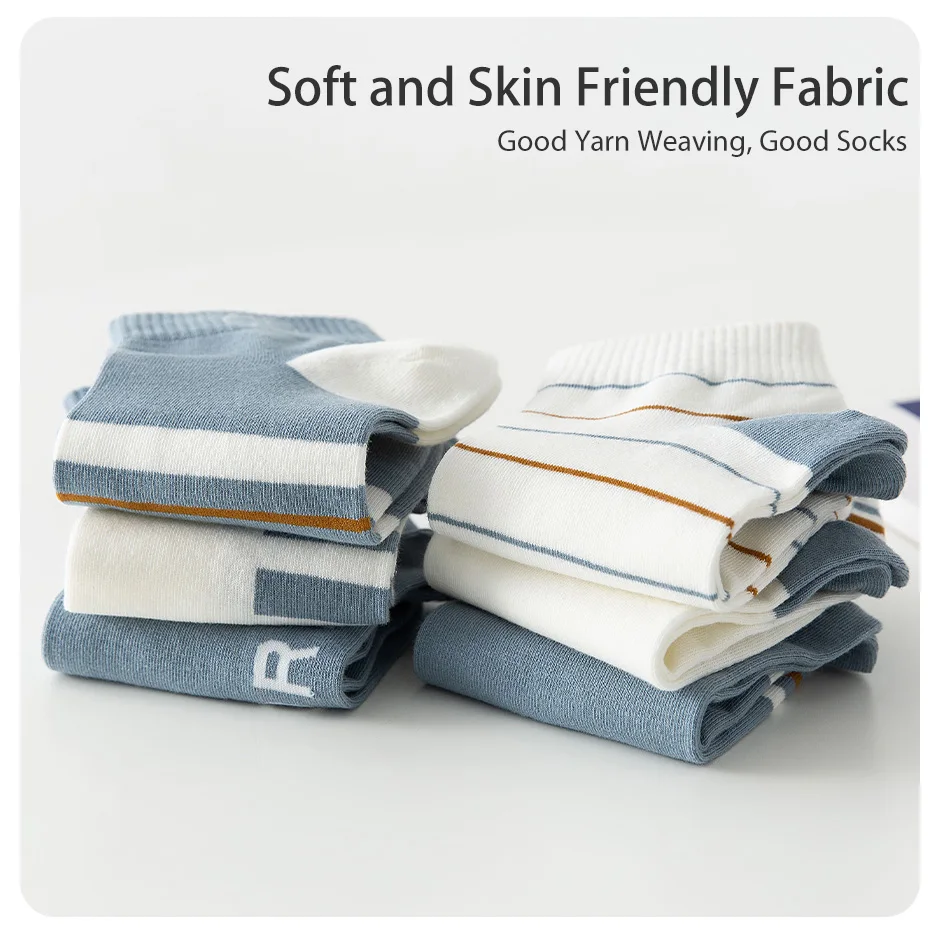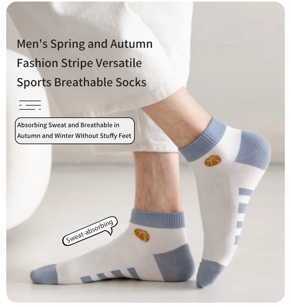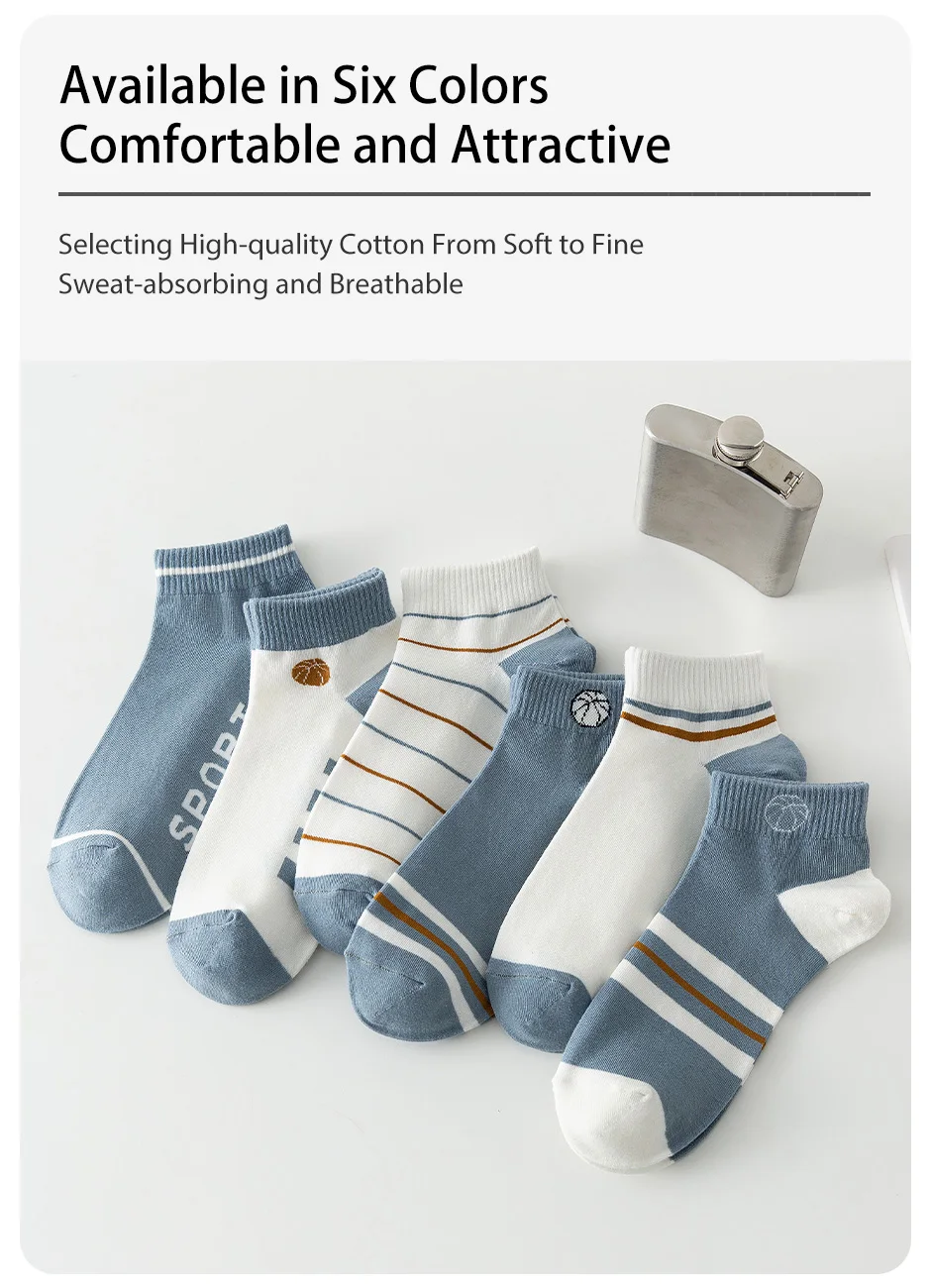 6 Pairs of Men's Spring Autumn Letter Slogan Striped Basketball Sports Breathable Fashion Versatile College Style Summer Socks