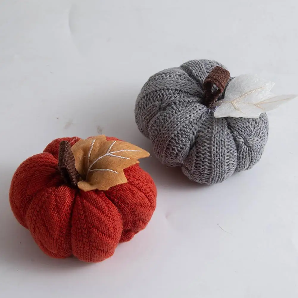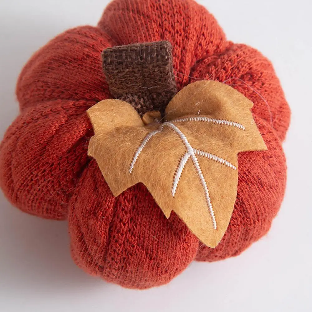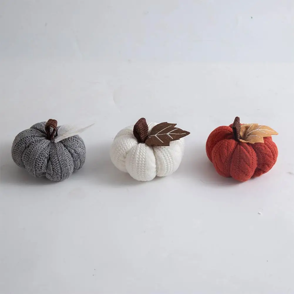 Autumn Vibes Decoration Fall Farmhouse Display Set of 3 Mini Knit Pumpkins for Thanksgiving Table Decor Realistic Faux Fall