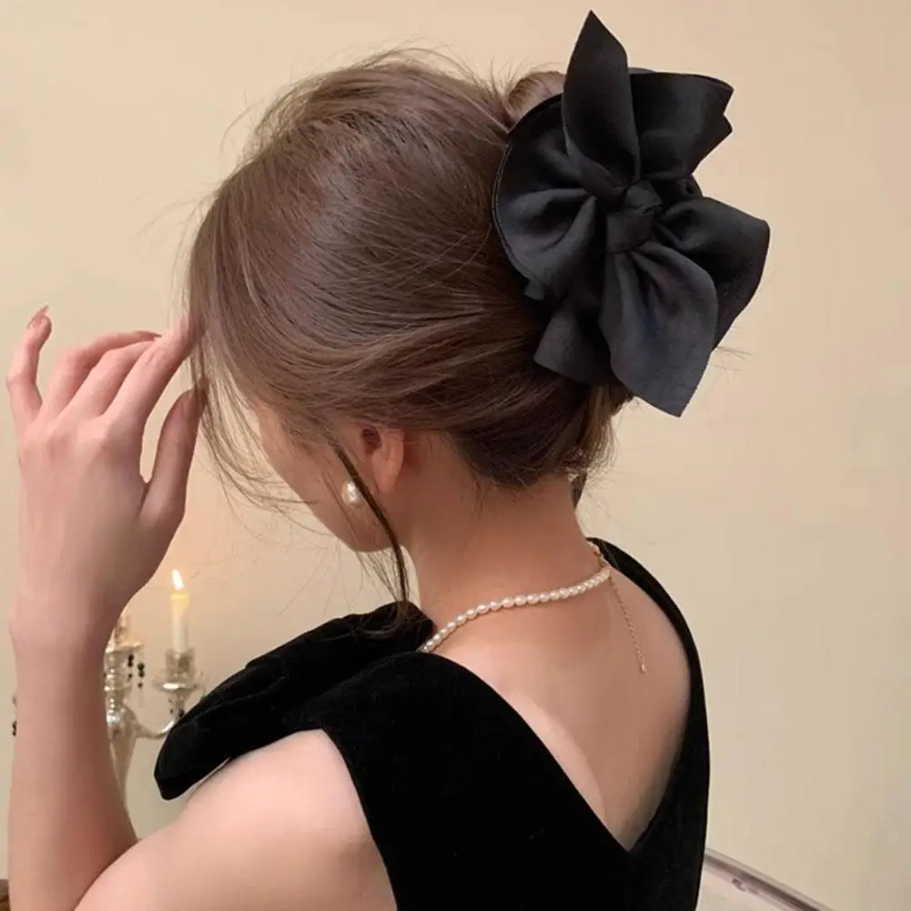 Elegant Women Bow Hair Claw Clips Retro Ponytail Braid Of Winter Autumn The Hair Claw Back Clip Grab Head Accessories Women F5C2