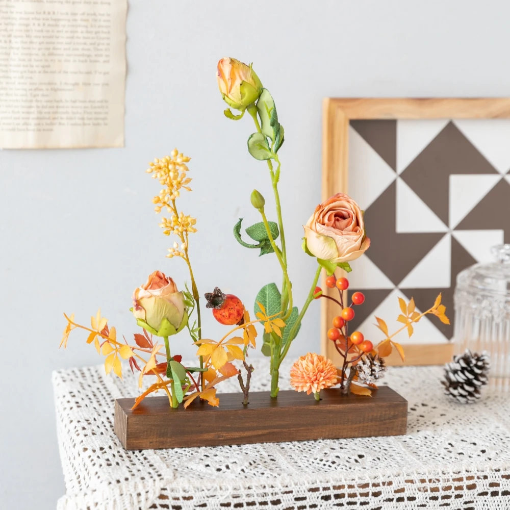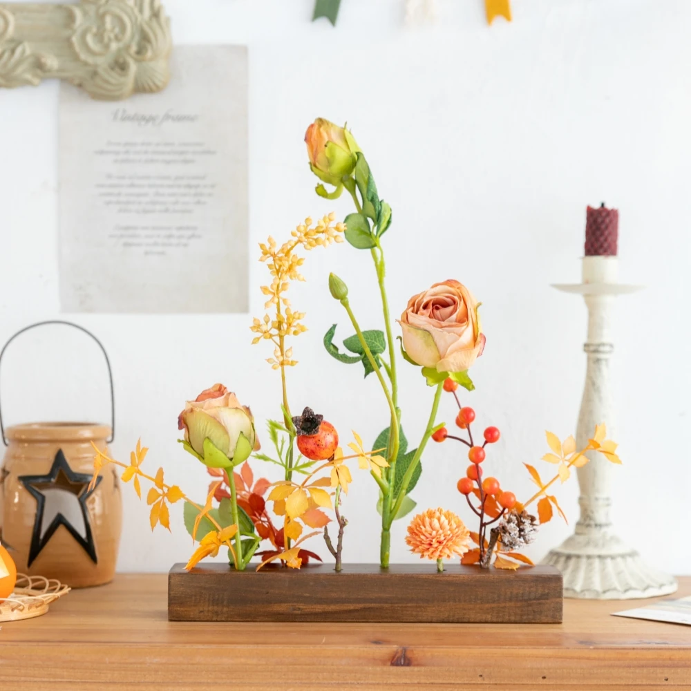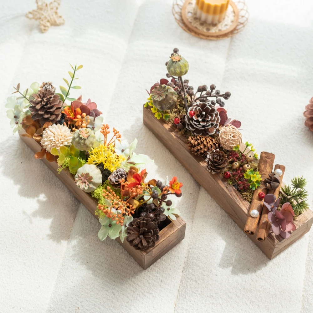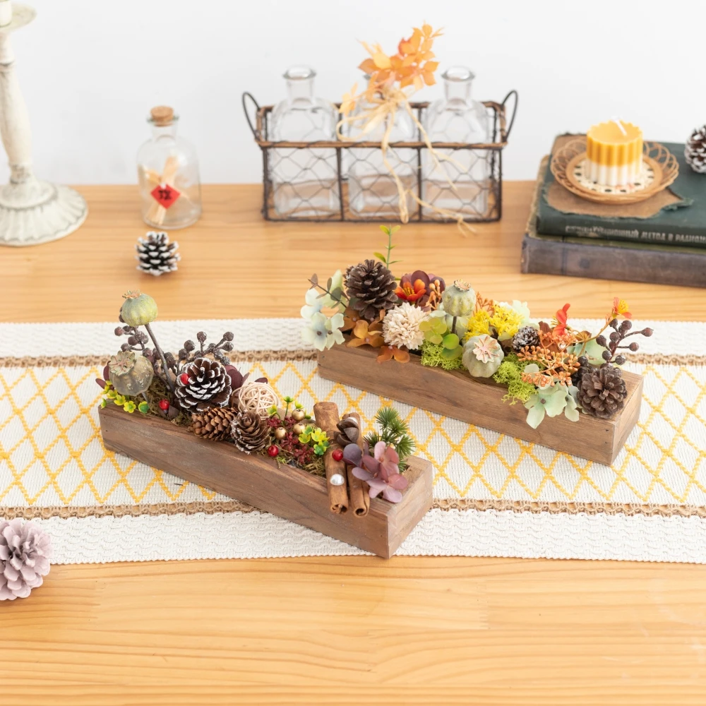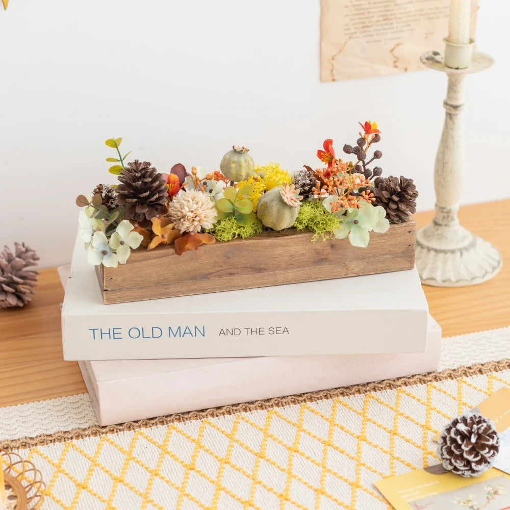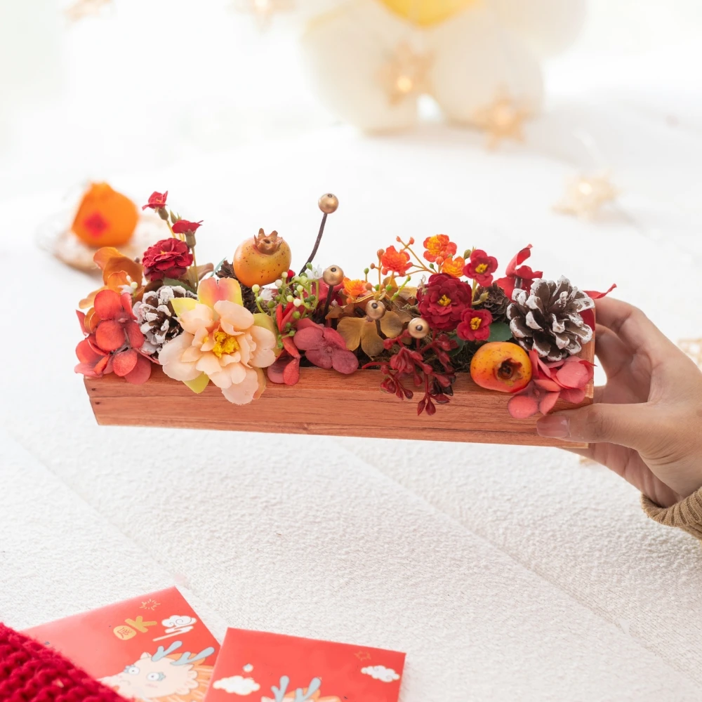 *Solid wood flower box, long-lasting preservation is not easy to bad simulation of flowers free care maintenance, natural and versatile.