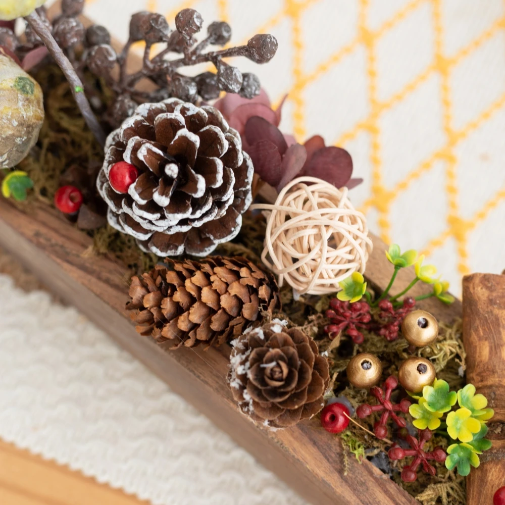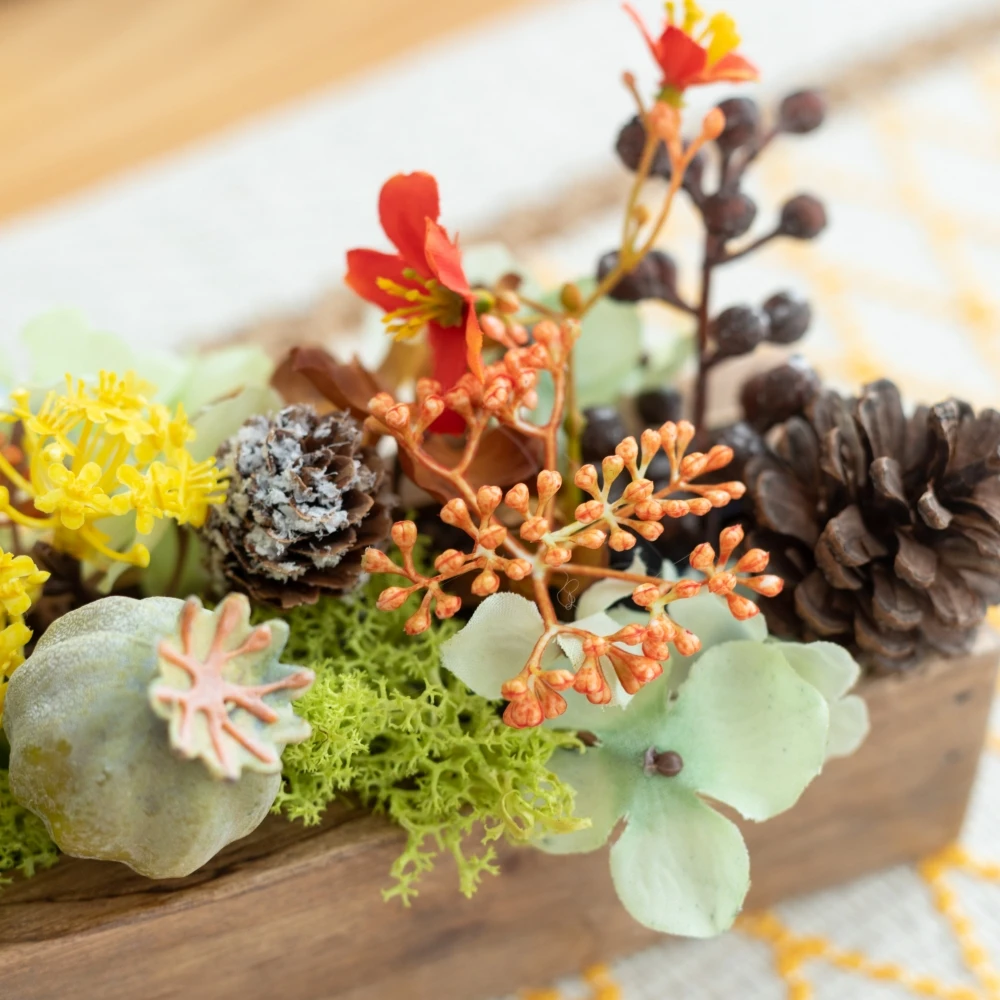 *Layers of pine cones, sweet-smelling cinnamon, cool simulation of flowers and plants cleverly designed to present a vivid look close to nature makes people feel as if they were in the middle of a small forest in the fall and winter, healed by plants.