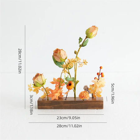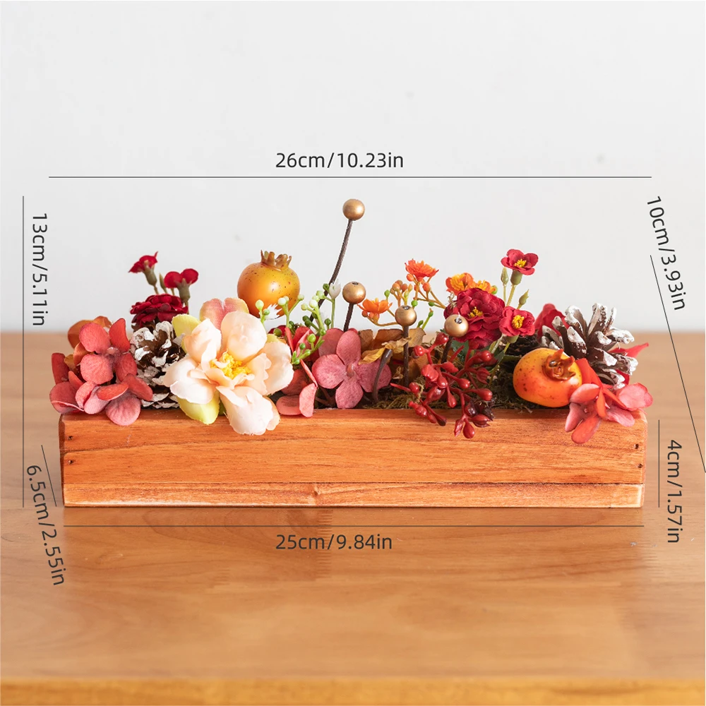Fall Flower Arrangement with Wooden Vase Artificial Flowers in Pot for Home Room Table Decor Christmas Thanksgiving Decor Gift