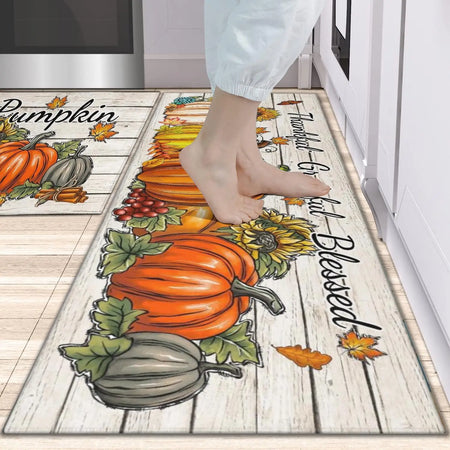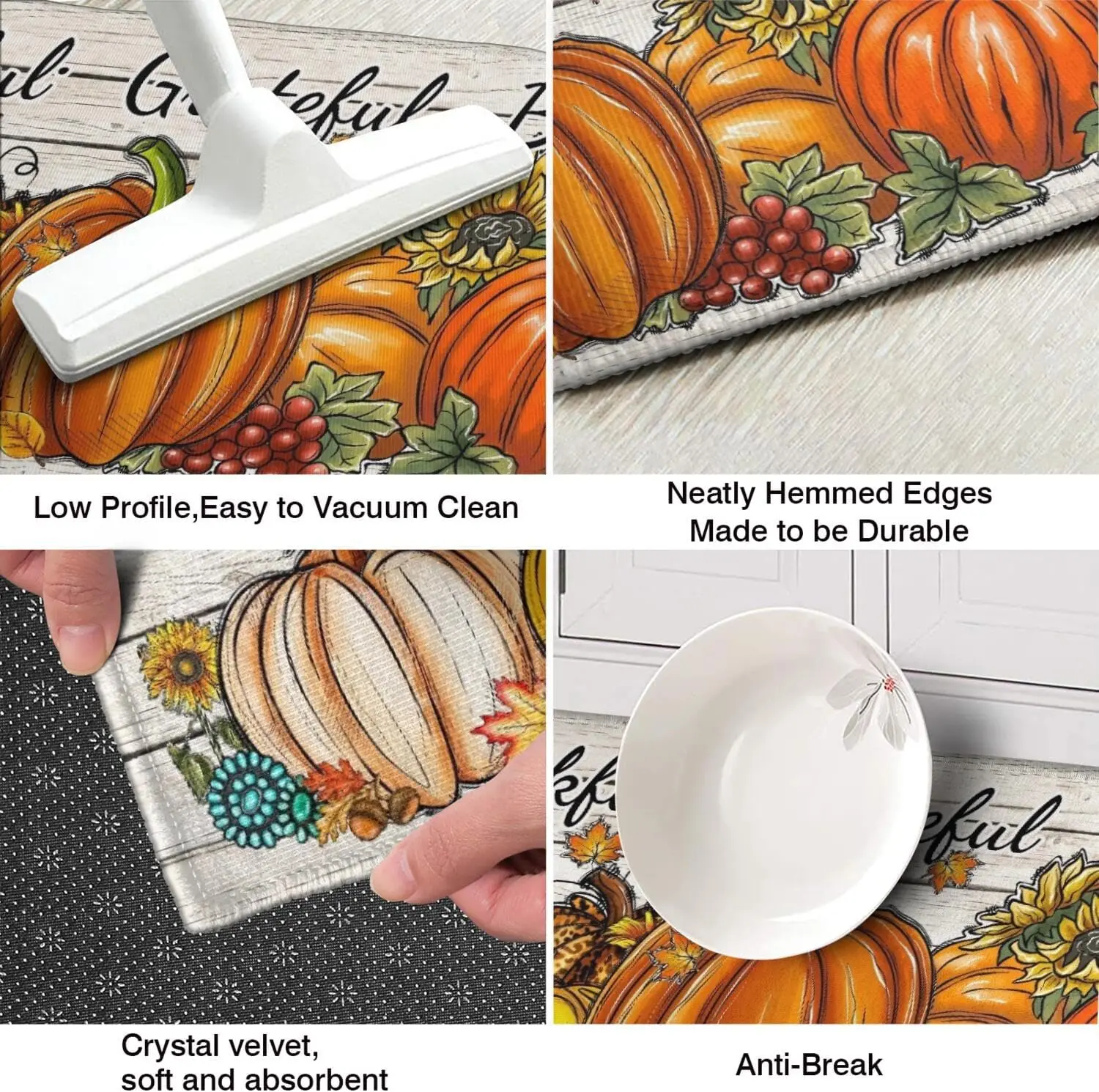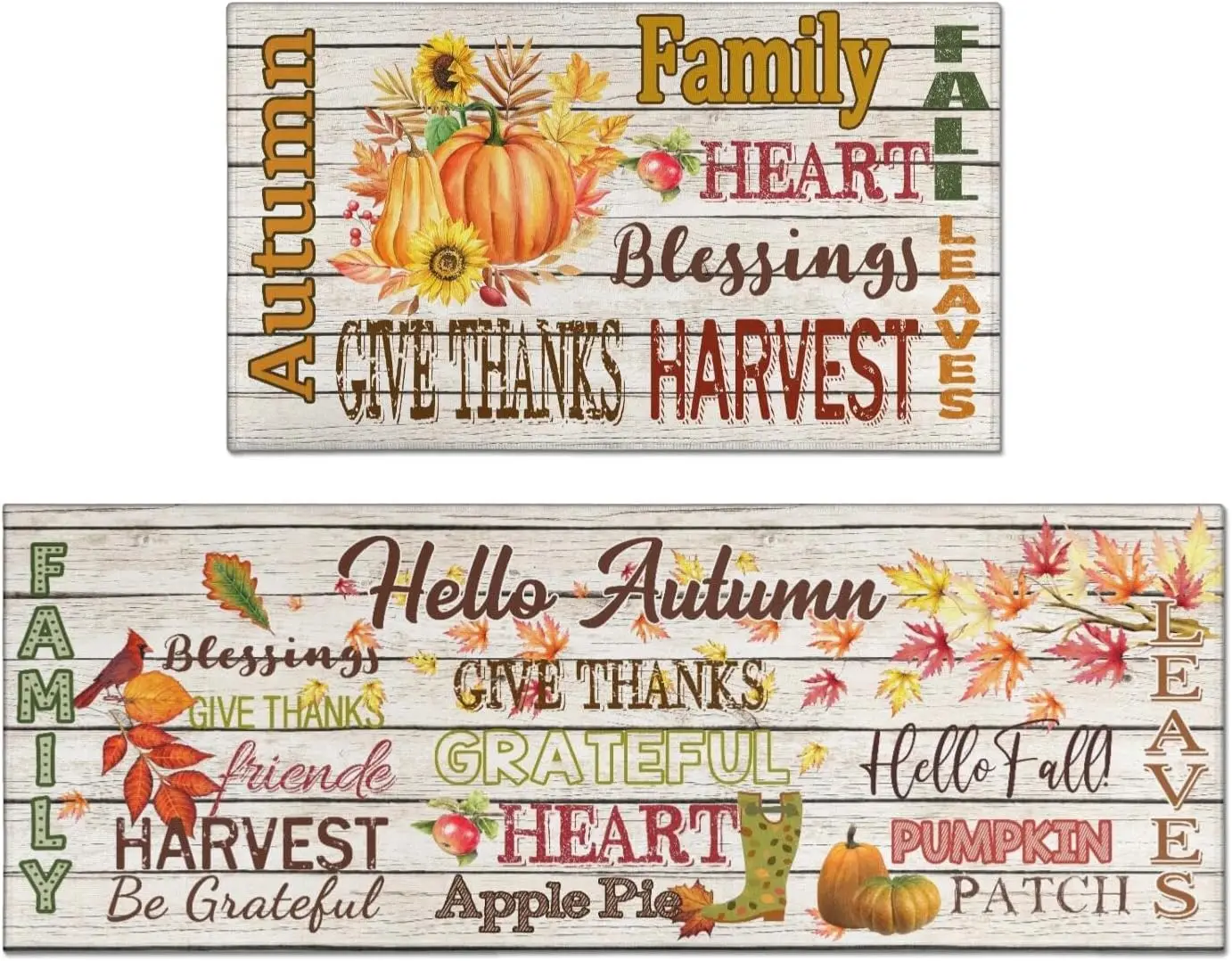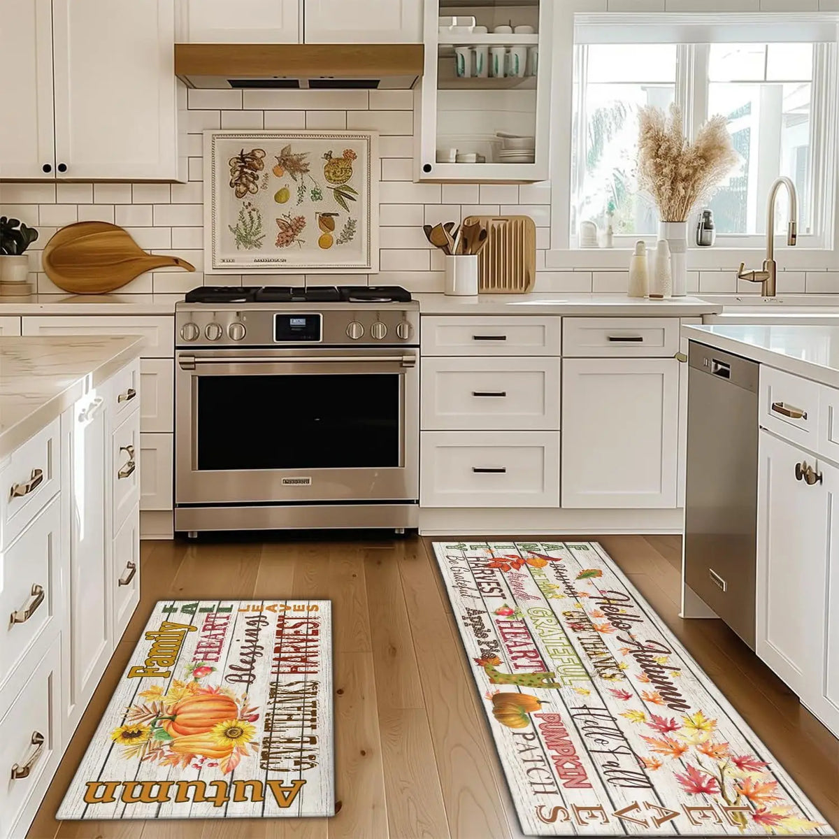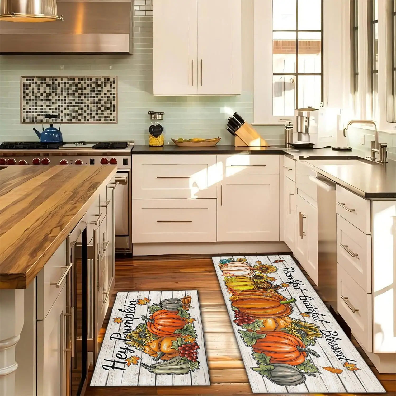 Fall Kitchen Rug and Mat Hello Autumn Pumpkin Kitchen Mats for Floor, Thanksgiving Kitchen Mats Home Decor Doormat Runner Rugs
