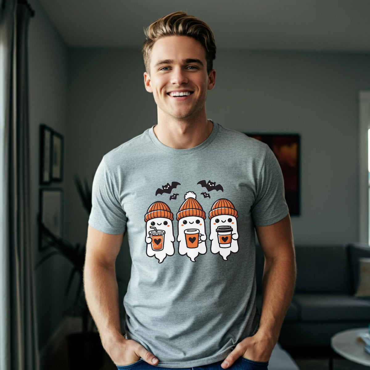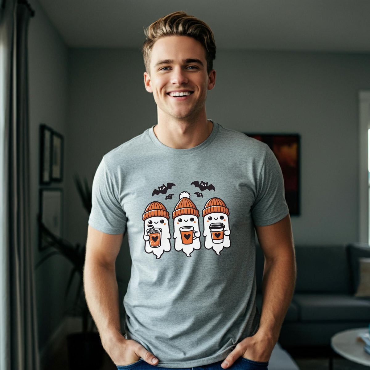Halloween Ghosts Latte Unisex T-Shirt | Spooky Coffee Tee | Cute Ghosts Shirt | Festive Halloween Apparel | Perfect for Fall Vibes