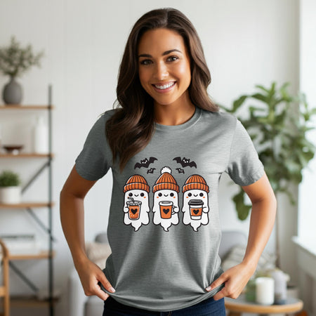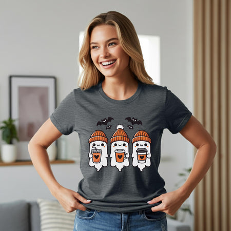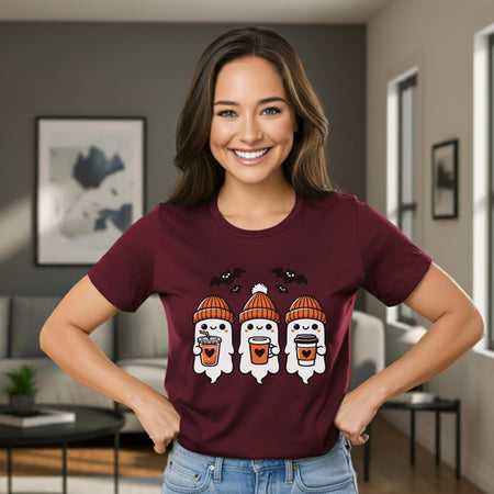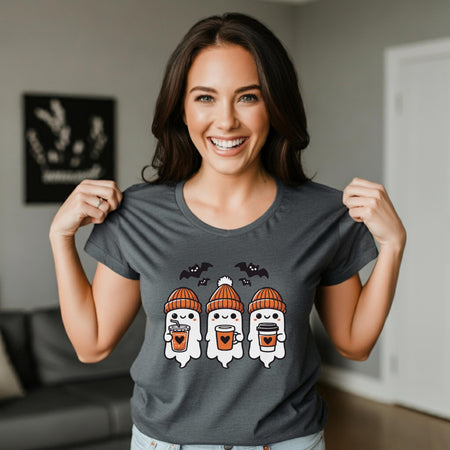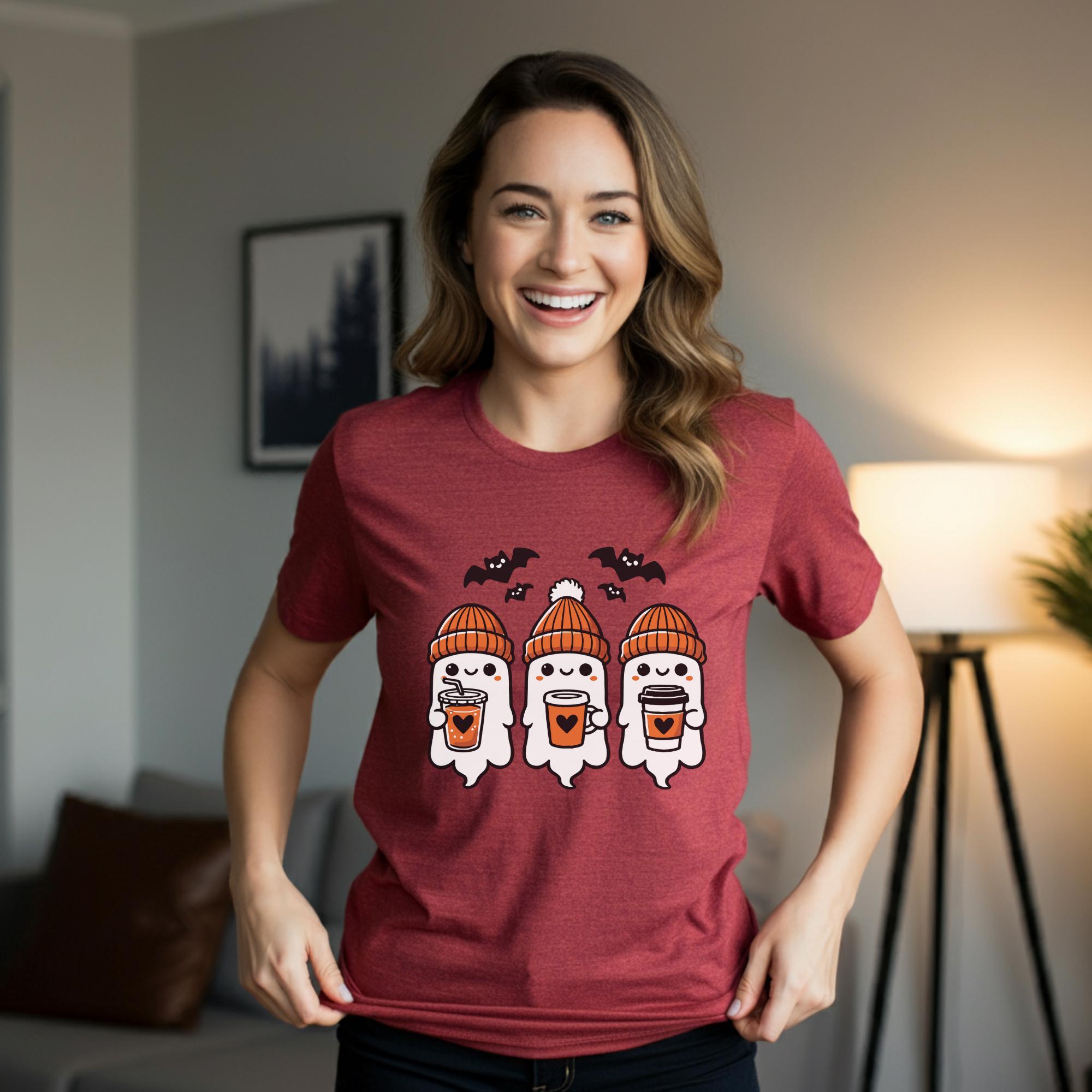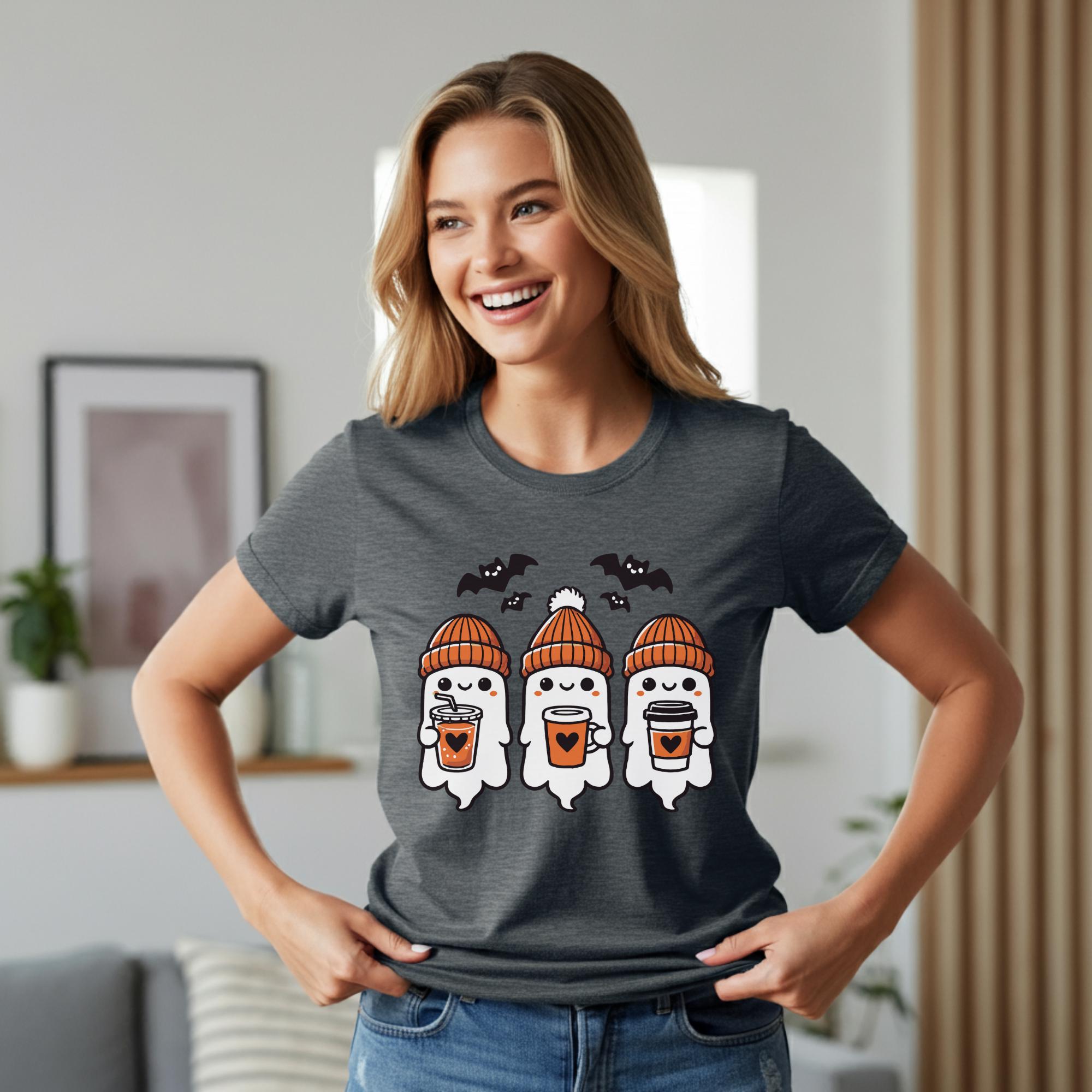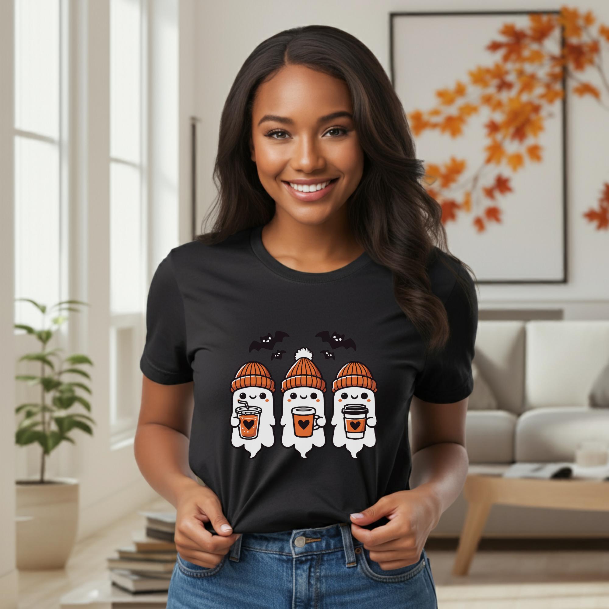 - Perfect Weight: At a cozy 5.3 oz, this tee is ideal for everyday wear, whether layered or worn on its own. - Comfortable Fit: The seamless seven-eighths inch collar ensures a smooth, irritation-free fit around your neck. - Shape Retention: With shoulder-to-shoulder taping, this shirt holds its shape wash after wash, maintaining its stylish look.Benefits: - Ultimate Comfort: Made from soft, pre-shrunk 100% cotton for a cozy feel that’s perfect for all-day wear. - Durable Design: Double-needle stitching at the neckline, bottom hem, and sleeves ensures long-lasting wear, even after multiple washes. - Irritation-Free Fit: Features a seamless seven-eighths inch collar for a smooth and comfortable fit around the neck. - Fun and Festive Design: The playful ghost and latte graphic adds a whimsical touch to your autumn wardrobe, making it a standout piece. - Unisex Fit: Designed to be flattering and comfortable for everyone, making it a versatile option for all family members. - Perfect for Fall: Ideal for Halloween gatherings, coffee shop visits, or casual outings, making it a versatile addition to your closet. - Great for Gifting: A delightful gift for coffee lovers and Halloween enthusiasts, spreading joy to friends and family.Why You’ll Love It: This shirt is not just a piece of clothing; it’s a celebration of the spooky season! Perfect for coffee lovers and Halloween enthusiasts alike, it’s sure to spark conversations and bring smiles. Its fun and quirky design captures the joy of fall, making it a delightful addition to your closet or a thoughtful gift for loved ones.Don’t miss out on this festive must-have! Order your Halloween Ghosts Latte Unisex T-Shirt today and embrace the spirit of Halloween in style. Treat yourself or surprise a fellow coffee lover with a unique tee that combines comfort, fun, and festive vibes!