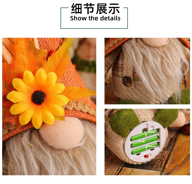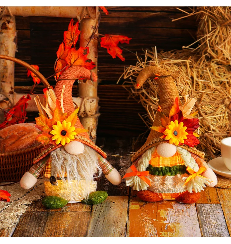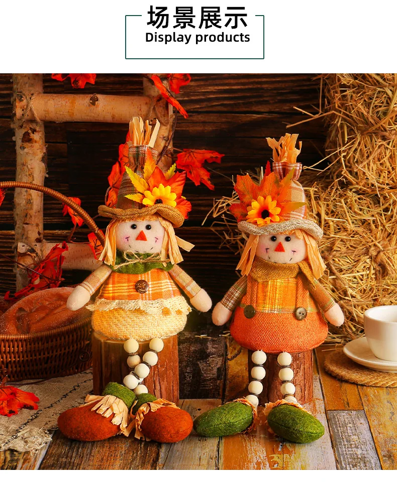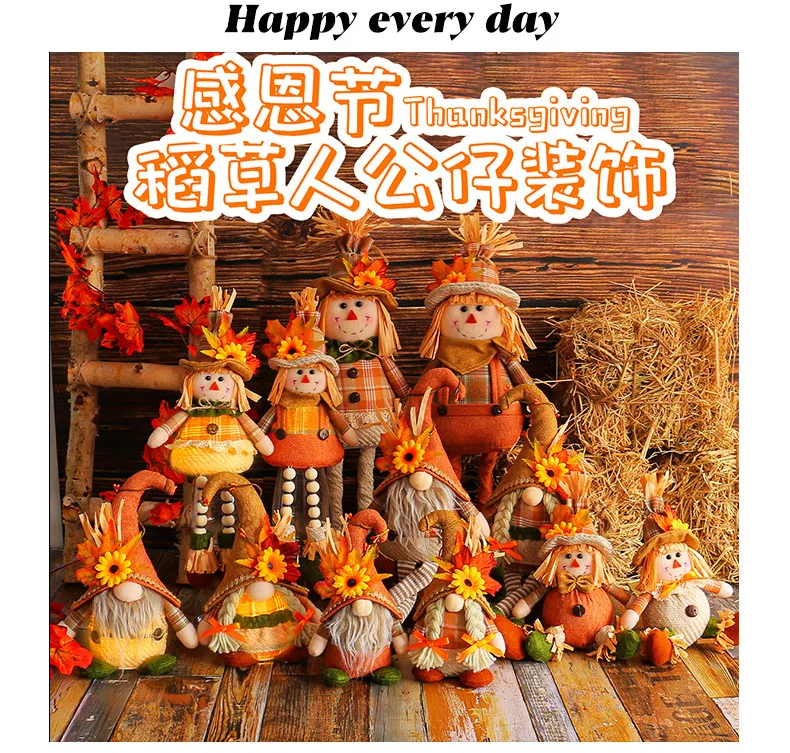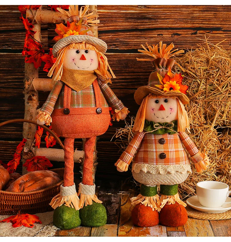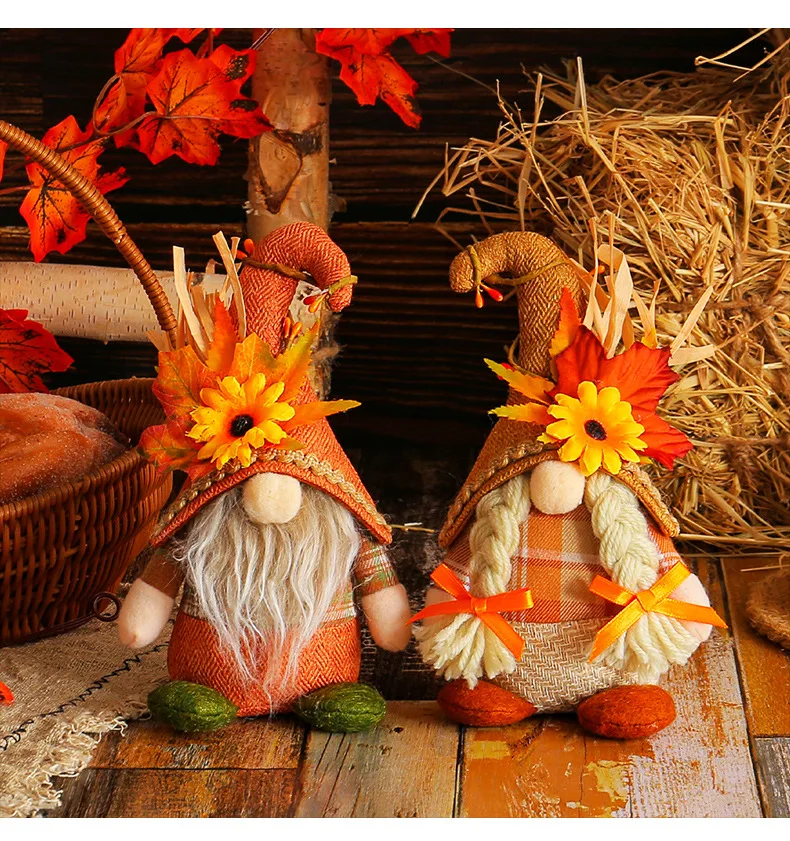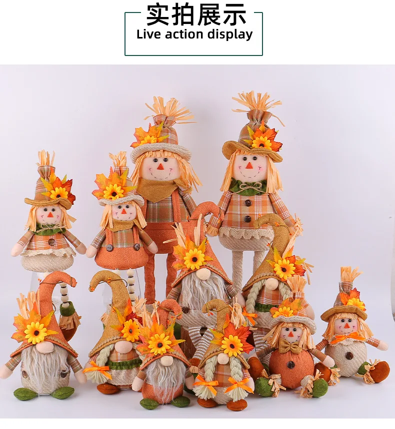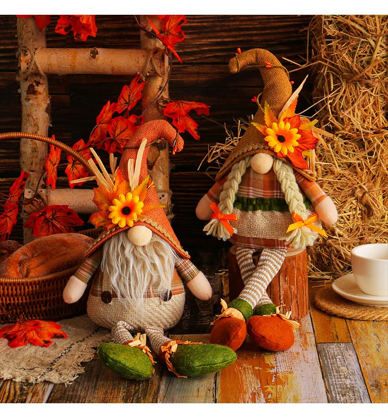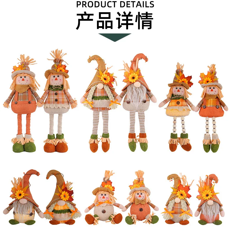 Halloween Gnomes Doll Harvest Season Maple Leaf Straw Hat Long Legs Plush Dwarf Dolls Autumn Halloween Thanksgiving Decoration