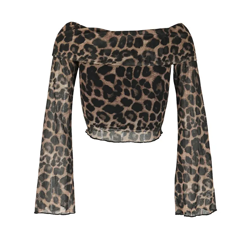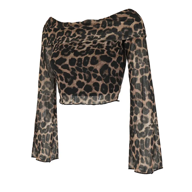 New Women's T-shirt Autumn Streetwear Fashion Long Sleeves O-Neck T-shirt Sexy Leopard Backless Lady Versatile Knitted Clothing